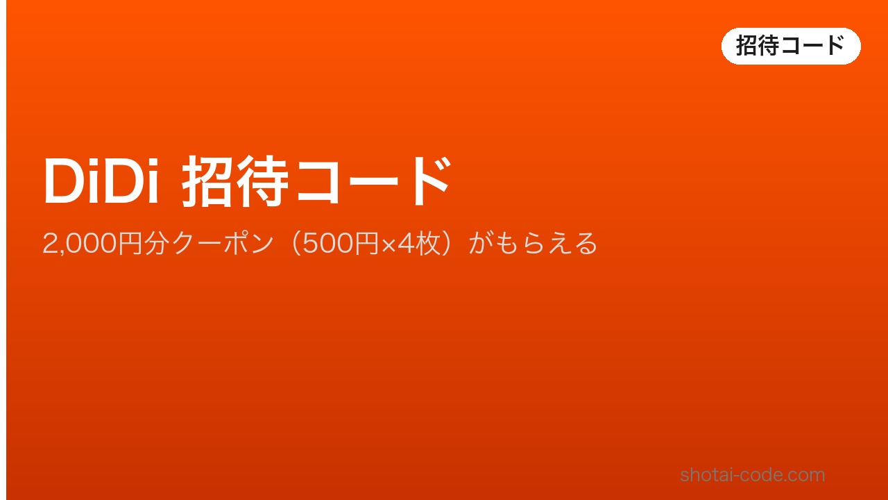 DiDiの招待コードを使うと、新規登録時に2,000円分クーポン(500円×4枚)がもらえます。この記事では2026年04月時点で実際に使えるコードと、正しい入力手順をわかりやすく解説します。コードは新規登録時のみ有効なので、登録前にコードを準備してから手続きを進めましょう。